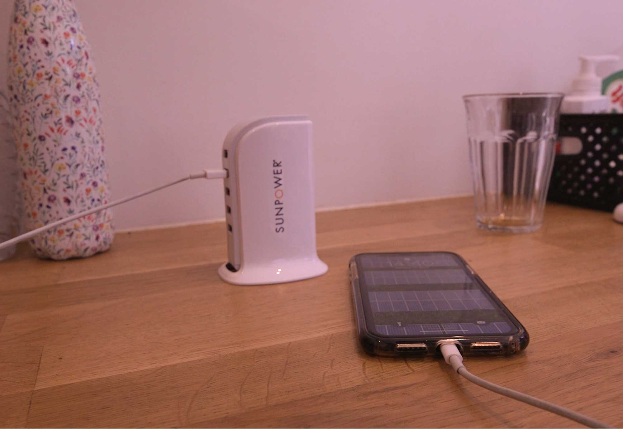 De mobiele telefoon, we kunnen tegenwoordig niet meer zonder. Daarom is het belangrijk dat deze te allen tijde opgeladen is. Een actieve mobiele telefoon oplader verbruikt gemiddeld 0,005 kW. Met uw installatie kunt u 710.000 uur uw telefoon opladen. Dat wil zeggen een jaar lang 81 telefoons, 24/7 aan de lader.