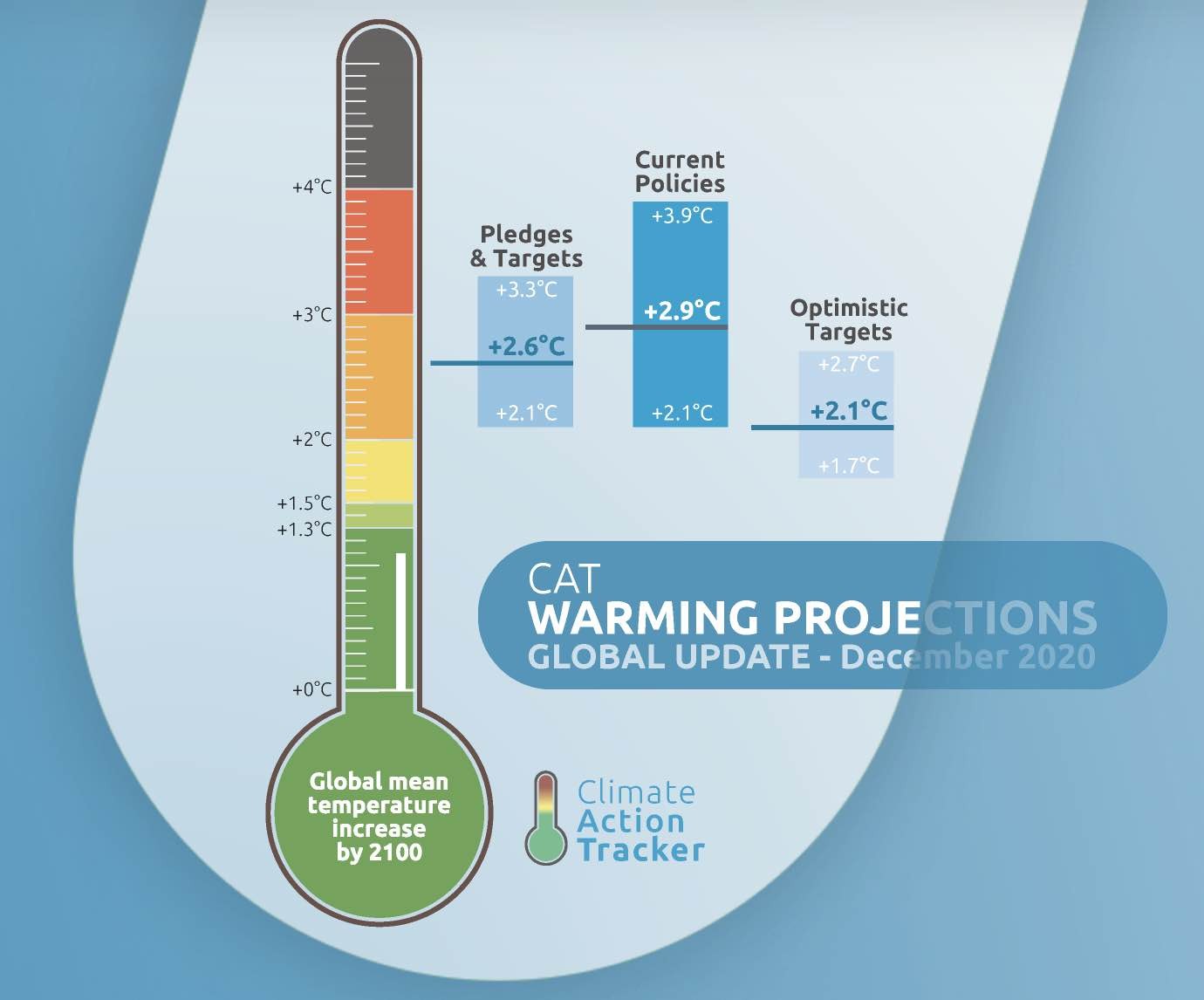 Voor het klimaat is dat natuurlijk goed nieuws. En wat dat betreft is het ook fijn dat er wereldwijd eindelijk zicht op is dat we de temperatuurstijging in elk geval in theorie tot om en nabij de 2 graden Celsius zouden kunnen houden. De onafhankelijke groep ‘Climate Action Tracker’ houdt alle aangekondigde beleidsmaatregelen van de landen met de meeste CO2 uitstoot bij. De optelsom van alle maatregelen zou, mits ze ook allemaal worden uitgevoerd, tegen het jaar 2100 de opwarming van de aarde tot 2,1 graad Celsius weten te beperken. Nog steeds geen reden tot juichen natuurlijk, maar het maakt de boel er wel wat minder hopeloos op.