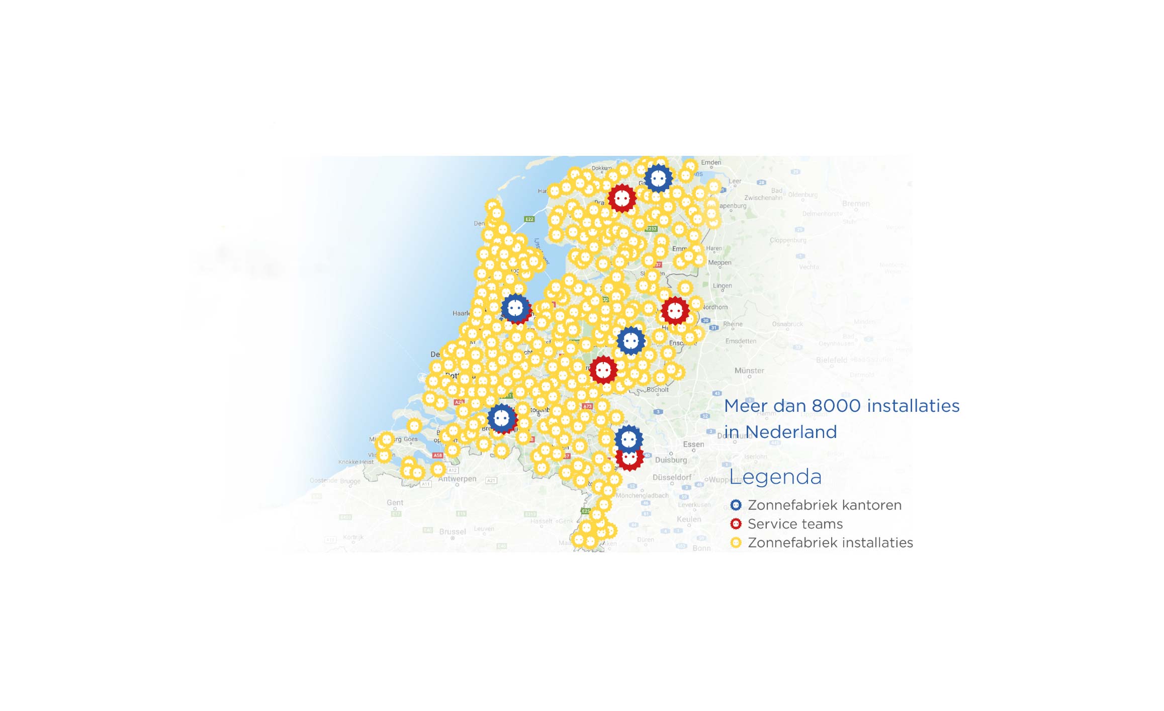Zonnefabriek was het derde bedrijf dat offerte uitbracht. In tegenstelling tot de andere bedrijven die via Google earth de situatie op het dak bekeken, klom de vertegenwoordiger van Zonnefabriek door een raam naar buiten op het dak. Ook de situatie binnen bekeek hij en hij legde duidelijk uit hoe de aanleg zou plaatsvinden. Ik hoefde me niet ongerust te maken, dat er leidingen door het huis zouden worden aangelegd. Voor mij was deze dienstverlening doorslaggevend. Temeer daar ons het maximaal mogelijke aantal panelen werd geadviseerd. Namelijk 11 stuks in plaats van 8, van een ander bedrijf. De aanleg zelf ging met veel geduld en aandacht gepaard. Omdat de installateur een klein kastje liever niet zichtbaar wilde plaatsen, wrong hij zich bijna letterlijk in duizend bochten, hij wilde niet opgeven totdat ik hem zei, het mag echt in de ruimte bij de wasmachine worden opgehangen! Kortom, een bedrijf met deskundige medewerkers die liefde voor hun vak hebben.